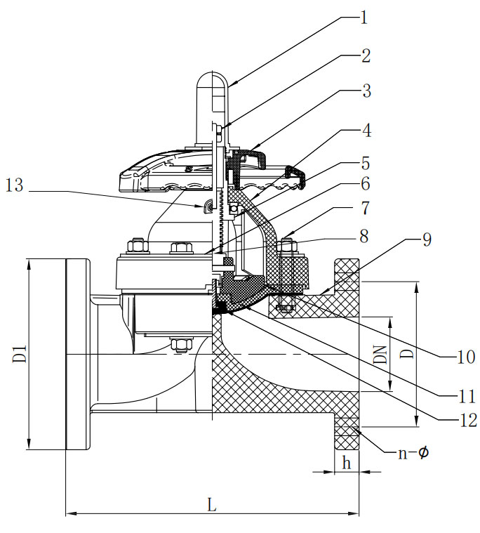 | Dn | D1 (mm) | D (mm) | L (mm) | H (mm) | n | Φ (mm) | ||||||||||